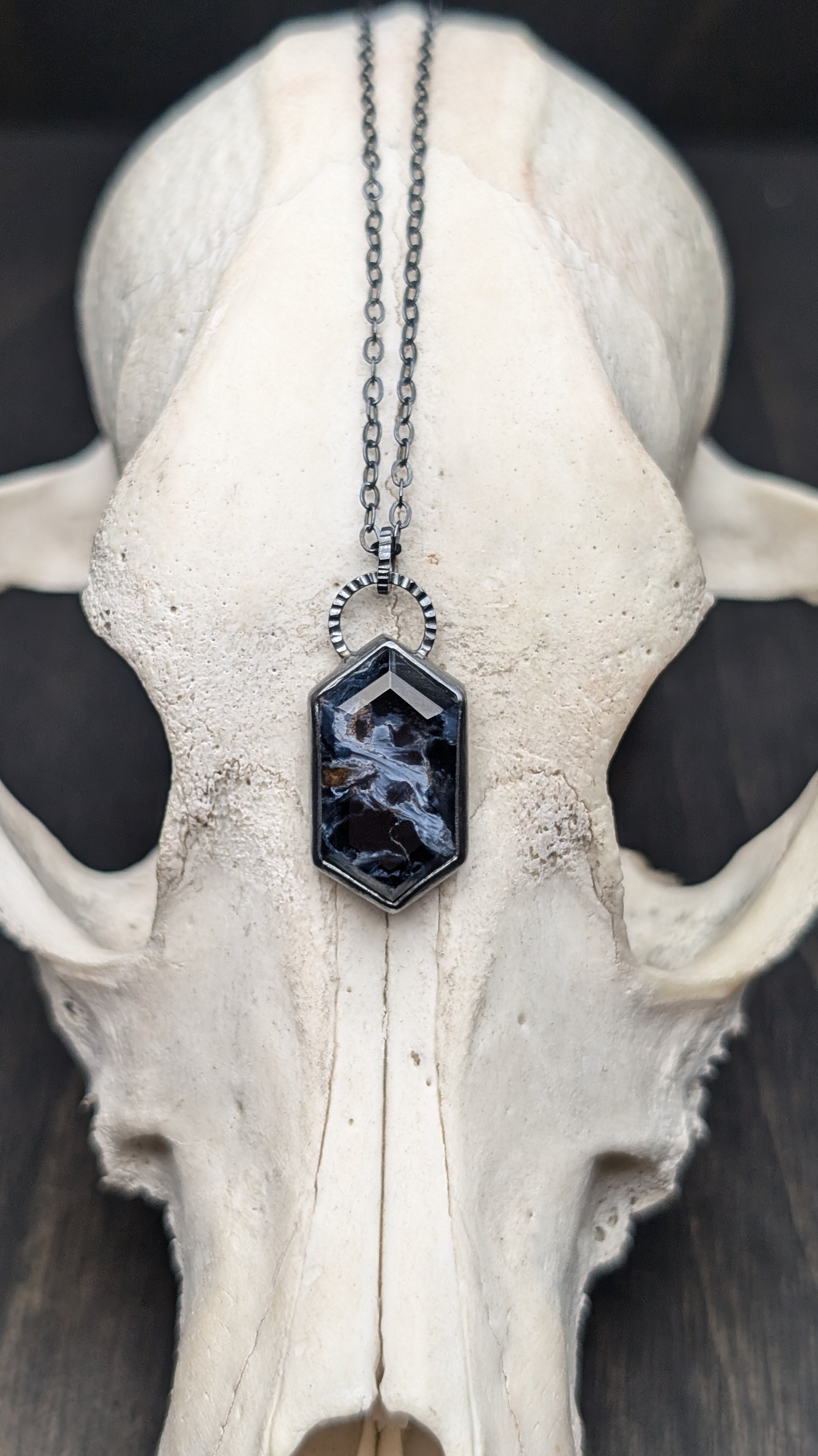 Pietersite Step Cut Tablet Textured Sterling Silver Necklace