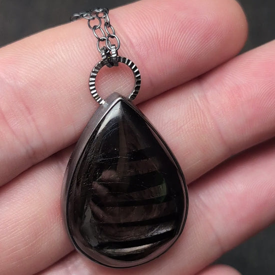 XL Teardrop Hypersthene Textured Sterling Silver Necklace